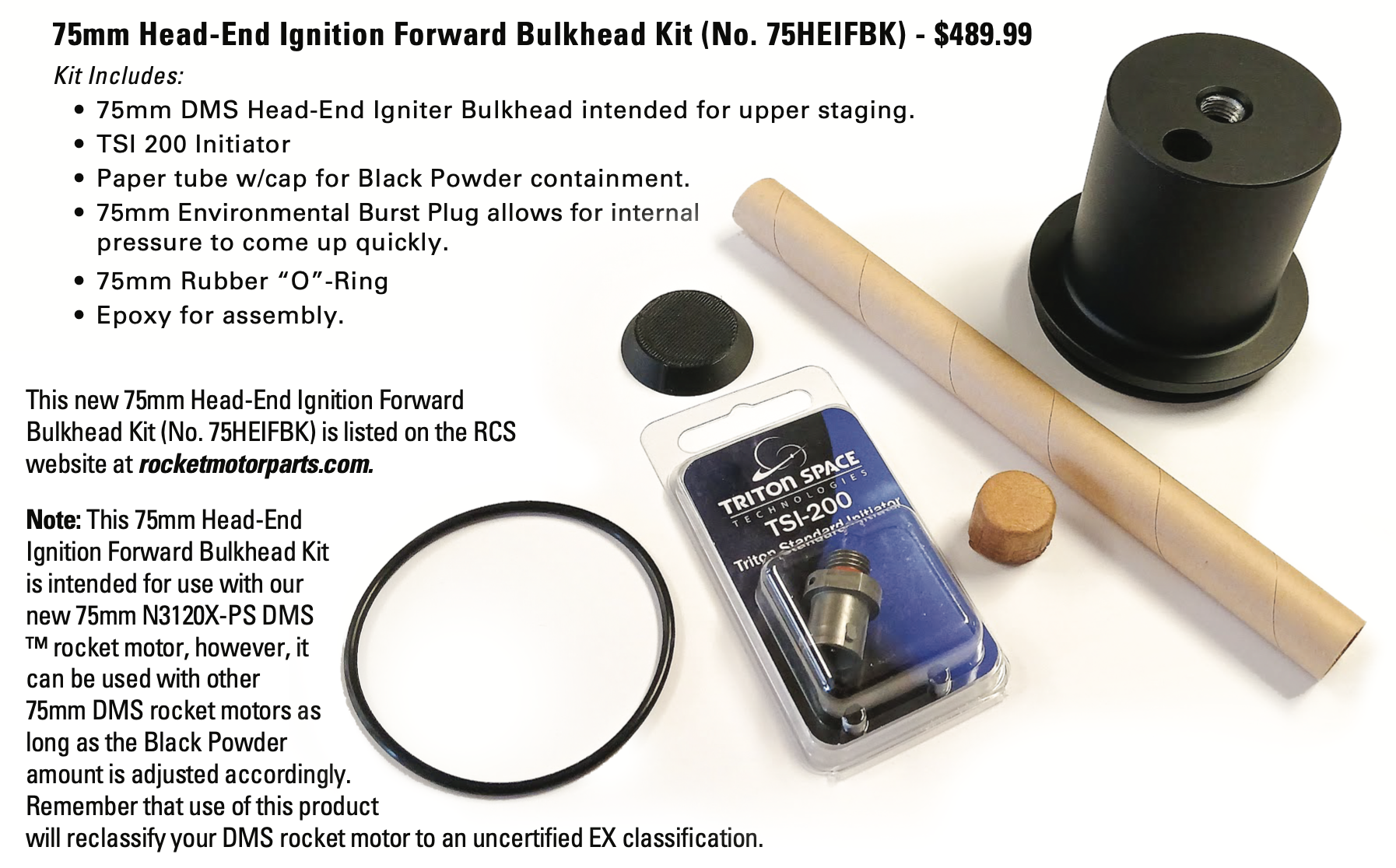 75mm Head-End Ignition Forward Bulkhead Kit (No. 75HEIFBK) - $489.99